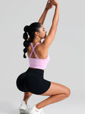 These versatile shorts pair perfectly with sports bras, crop tops, or fitted tanks for a coordinated athletic look. The sleek design and flattering fit make them ideal for both intense workouts and casual wear. Wear them to the gym, yoga studio, or even for running errands - they're stylish enough for any occasion.