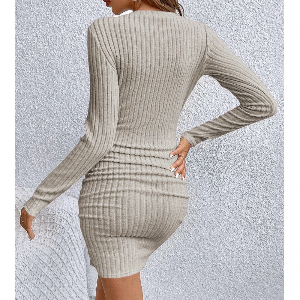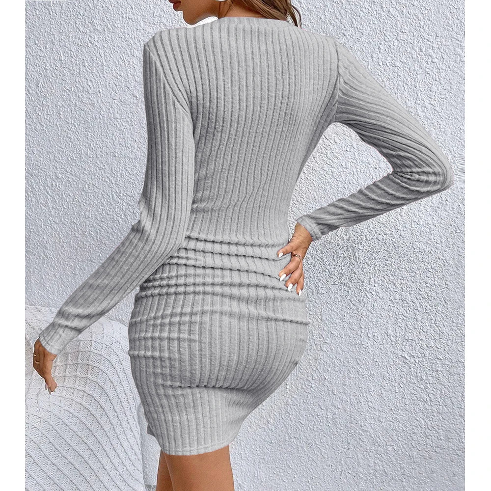 Elevate your autumn and winter wardrobe with this sophisticated long sleeve mini dress. Featuring a flattering V-neckline and slim fit silhouette, this versatile bodycon dress is perfect for office wear, casual outings, or evening events. The classic solid color design makes it easy to style for any occasion.