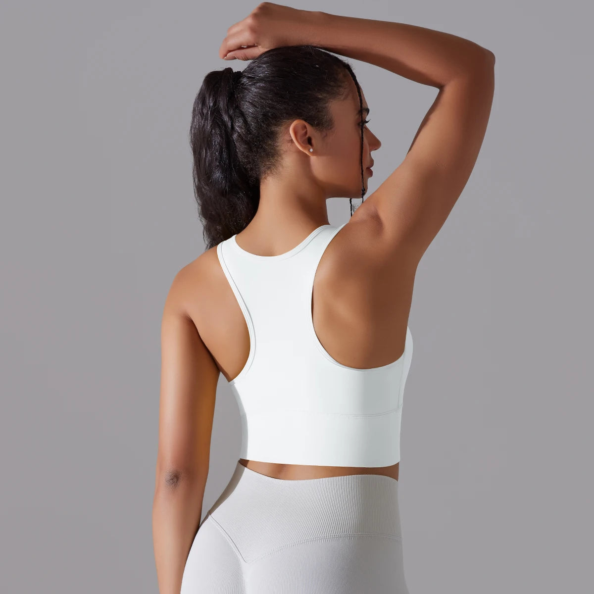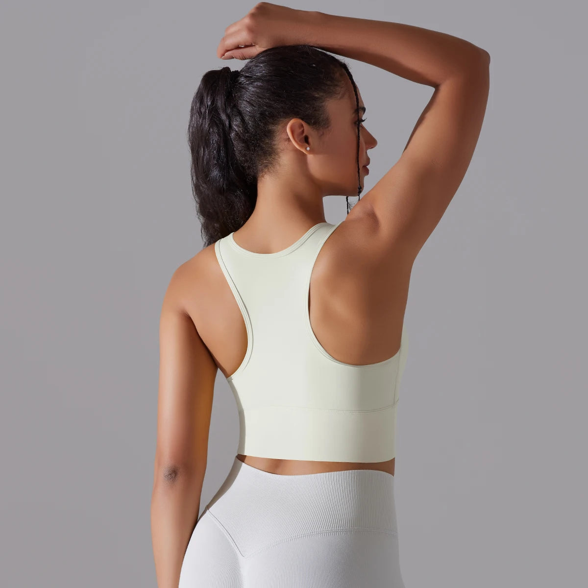This versatile sports bra works beautifully as both activewear and athleisure. Pair it with high-waisted leggings or yoga pants for a complete workout look, or style it with joggers and a zip-up hoodie for a casual, sporty outfit. The backless design adds a trendy touch that transitions seamlessly from gym to street.
