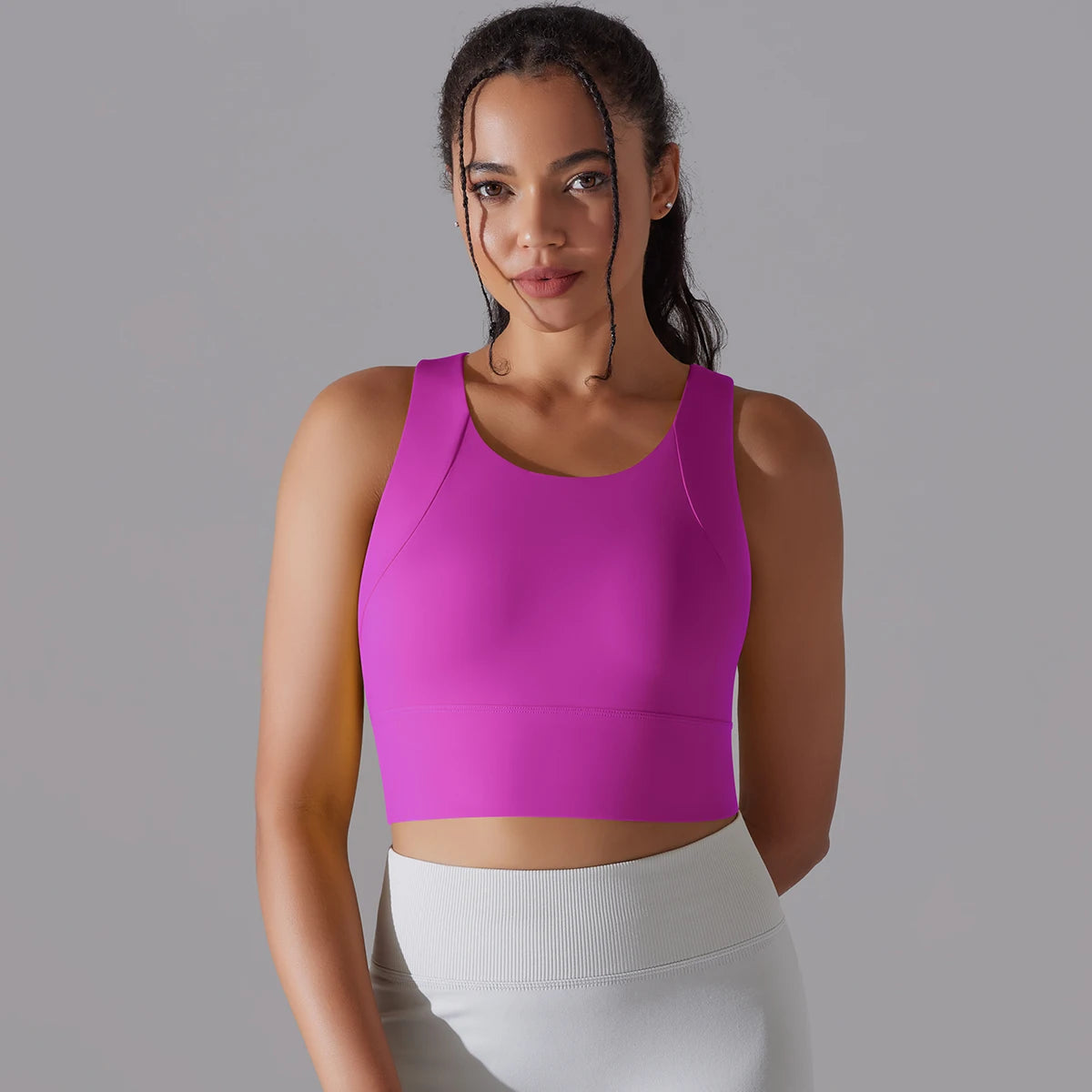 Elevate your workout wardrobe with this high-performance nylon sports bra designed for the active woman. Combining superior support with sleek style, this versatile crop top delivers comfort and confidence whether you're hitting the gym, flowing through yoga, or tackling your daily fitness routine.