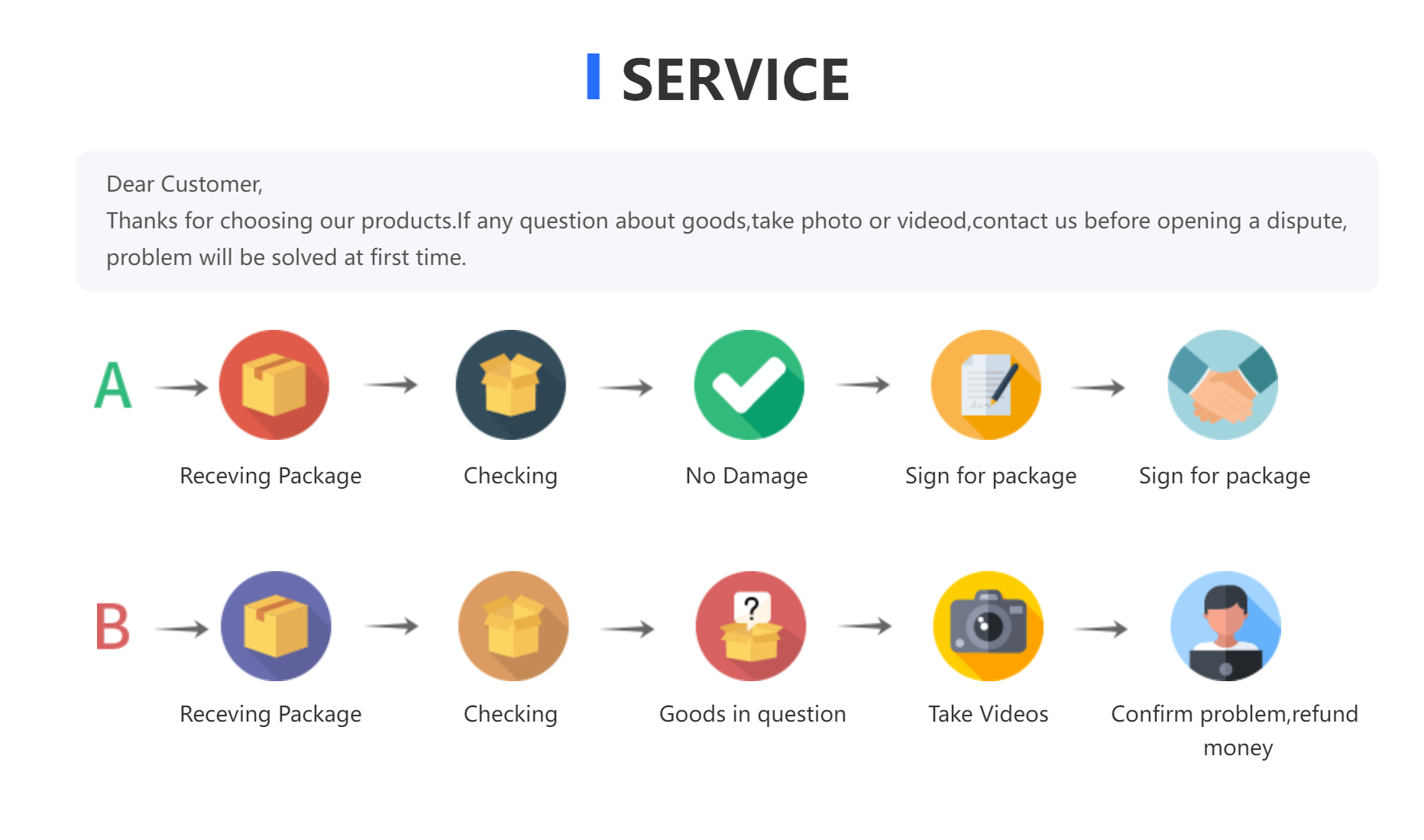 Please inspect your order upon reception and contact us immediately if the item is defective, damaged or if you receive the wrong item, so that we can evaluate the issue and make it right.