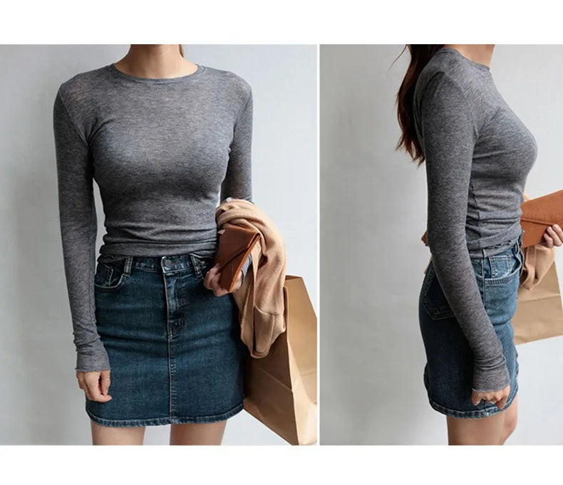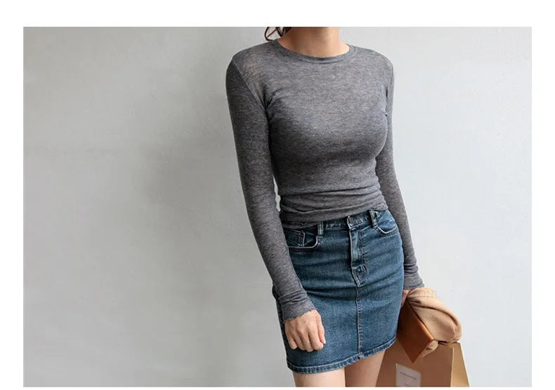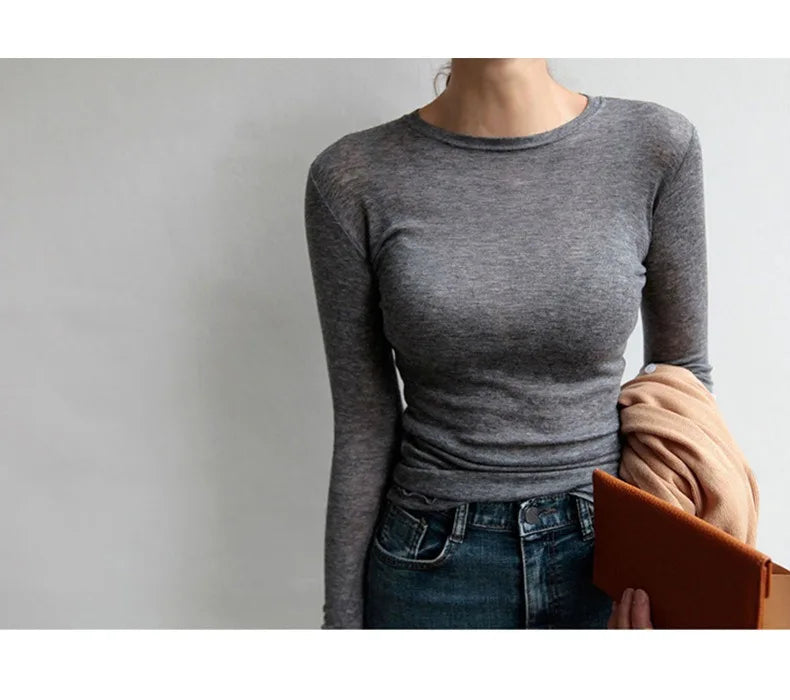 Elegant Sheer Long Sleeve T-Shirt for Women