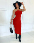 This stunning strapless maxi dress features an elegant chest-wrapped design that stays securely in place while creating a sophisticated, feminine silhouette. The high-stretch knit fabric hugs your body comfortably, providing a flattering fit that moves with you throughout the day.